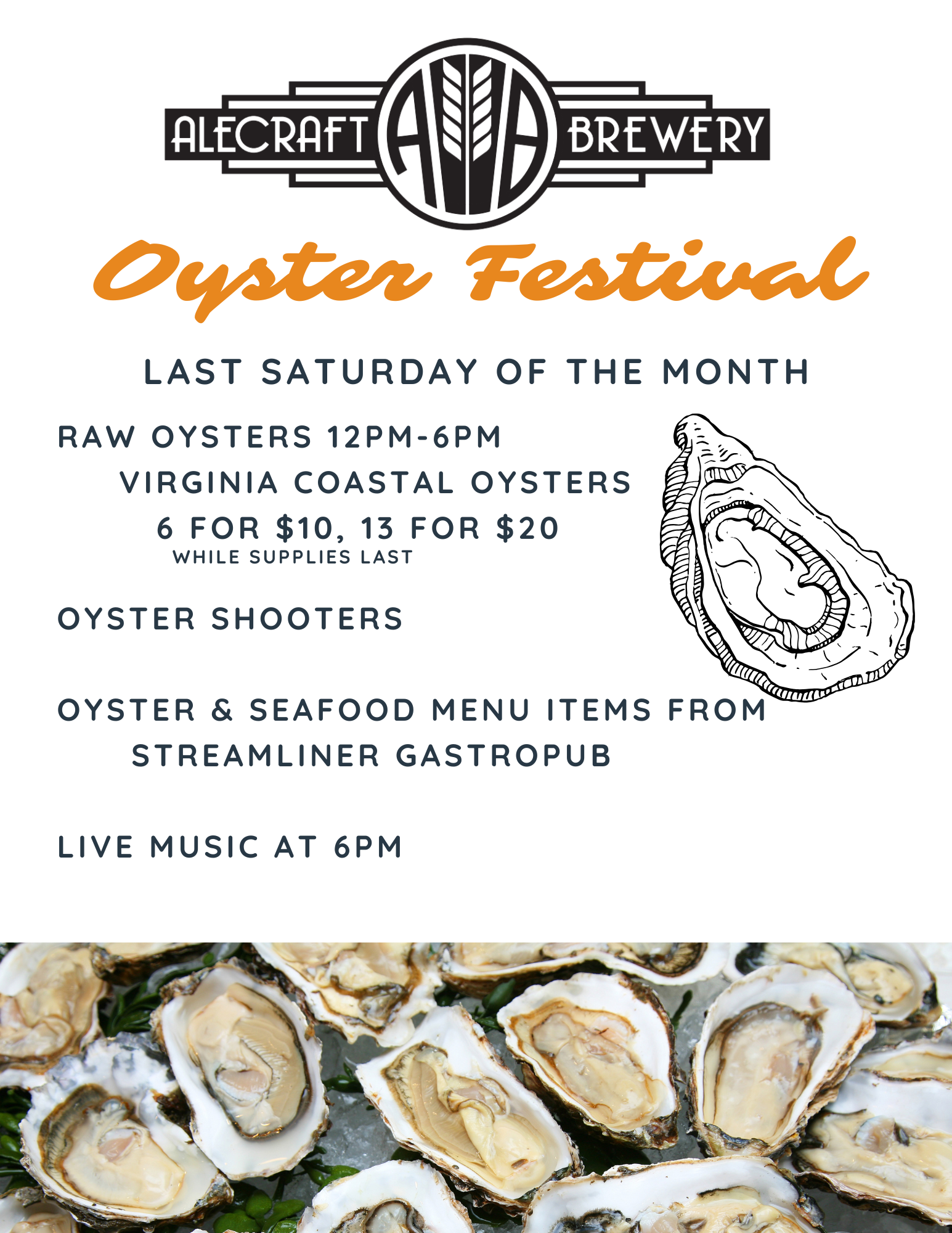 Always a shucking good time! join Jim the shuck master in the taproom.
